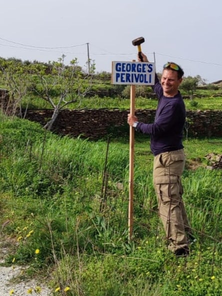 The name George (Georgos) comes from the words γη (land) + εργο (work) and means farmer, the one who works on the land. George spends several hours on the land: he cultivates the couple’s garden, their plants and takes care of the trees.